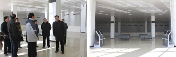 在保稅物流中心卡口上方"青海曹家堡保稅物流中心"以中英文兩種字體呈現(xiàn),海關標識赫然醒目。王黎明副省長一行在實地查看了1#、2#保稅倉庫、卡口、查驗庫、辦事大廳等設施,并邊走邊聽取物產(chǎn)集團總經(jīng)理王玉輝關于工程施工進展情況的匯報。