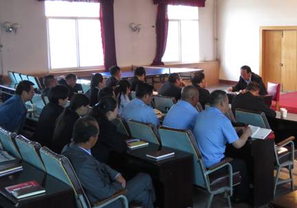 圖為青海省勞動(dòng)模范毛敏生同志向全體黨員講黨課