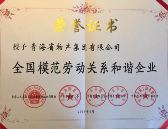 由青海省人力資源和社會(huì)保障廳、青海省總工會(huì)、青海省企業(yè)聯(lián)合會(huì)/企業(yè)家協(xié)會(huì)、青海省工商業(yè)聯(lián)合會(huì)共同推薦申報(bào),青海省物產(chǎn)集團(tuán)有限公司、青海互助青稞酒股份有限公司、正平路橋建設(shè)股份有限公司榮獲全國模范勞動(dòng)關(guān)系和諧企業(yè)光榮稱號(hào),西寧經(jīng)濟(jì)技術(shù)開發(fā)區(qū)東川工業(yè)園區(qū)榮獲全國模范勞動(dòng)關(guān)系和諧工業(yè)園區(qū)光榮稱號(hào),受到了國家人力資源和社會(huì)保障部、中華全國總工會(huì)、中國企聯(lián)、全國工商聯(lián)的隆重表彰。