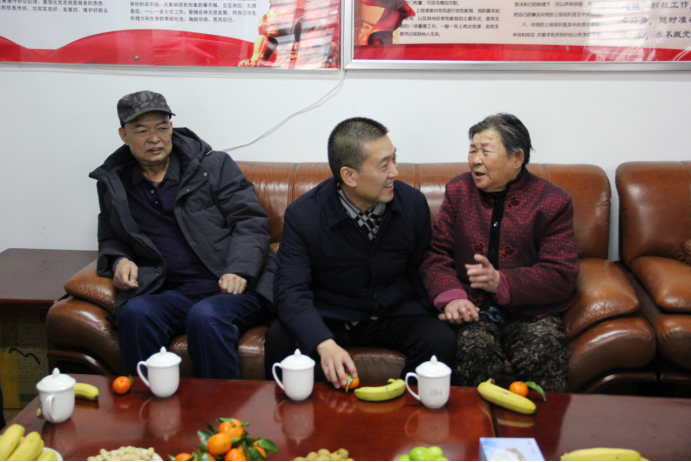 在退休老黨員家中,集團(tuán)黨委副書記、總經(jīng)理劉玲與老人們促膝交談,噓寒問(wèn)暖,關(guān)切地詢問(wèn)他們的健康狀況、居住環(huán)境及家庭情況,向他們轉(zhuǎn)達(dá)了集團(tuán)黨委的新春?jiǎn)柡蚝兔篮米8?,希望老人們?cè)诎捕韧砟甑耐瑫r(shí),繼續(xù)關(guān)心、支持物產(chǎn)集團(tuán)的改革與發(fā)展。
