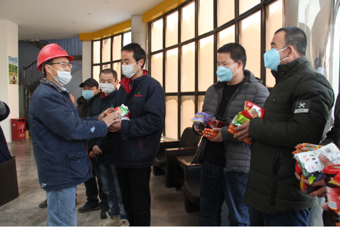 "下班后,大家本該正?;丶?,在疫情防控封村封路的情況下,大家仍然堅守在工作崗位、吃住在公司,為你們的愛崗敬業(yè)精神點贊,對默默支持你們工作的家人也表示感謝。"慰問現(xiàn)場氣氛溫馨、熱烈。王兆明同志的話語表達了對全體人員工作的肯定。同時,也體現(xiàn)了公司黨委、公司工會始終將職工的"冷暖"放在心上、落實到行動中,促進了公司和諧穩(wěn)定。王兆明同志要求大家,在疫情防控中,做好個人防護、養(yǎng)成良好的衛(wèi)生習慣,認真履職擔當、做好本崗位的安全生產(chǎn)工作,為打贏疫情防控阻擊戰(zhàn)做出新貢獻。全體職工表示,將克服困難,一如既往地做好本職工作,用實際行動感謝組織的關(guān)心和關(guān)愛。