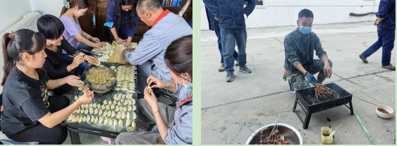 當(dāng)“圓月皎皎在中天”時(shí),各車間、各班組里處處洋溢著歡聲笑語,大家積極秀廚藝,展示各自烹飪技能、享受美食,像一家人一樣圍坐一起,分享著“團(tuán)圓”的味道!
