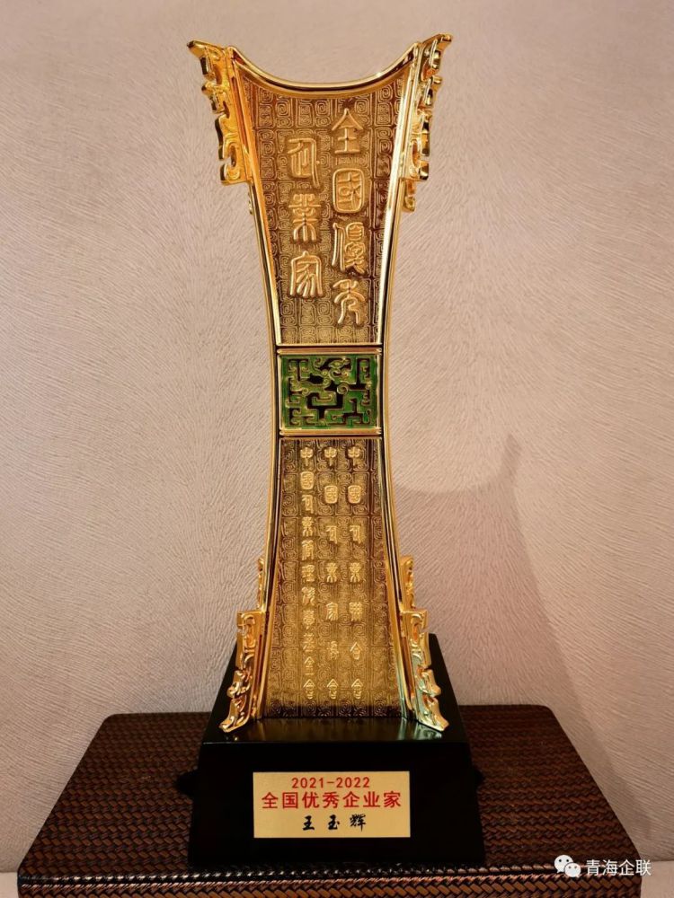 與會領(lǐng)導(dǎo)為青海物產(chǎn)集團黨委書記、董事長王玉輝頒發(fā)獎杯