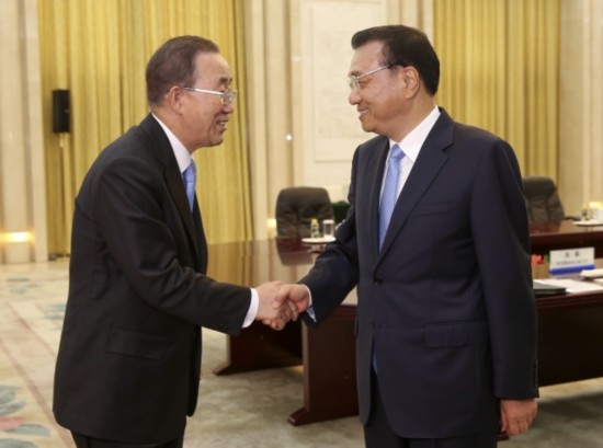 李克強(qiáng)總理會見聯(lián)合國秘書長潘基文時說:"人類面臨的最大挑戰(zhàn),是在處理'減貧'和'應(yīng)對氣候變化'兩個問題的過程中,取得一個平衡點。"