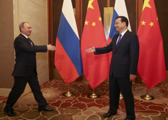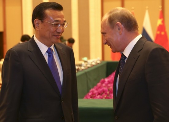 李克強(qiáng)總理會見俄羅斯總統(tǒng)普京時說:"中俄兩國是戰(zhàn)略伙伴,互為最大鄰國。共同維護(hù)二戰(zhàn)勝利成果,反對歪曲篡改二戰(zhàn)歷史,這是我們的共識,也是對世界正義的伸張。"