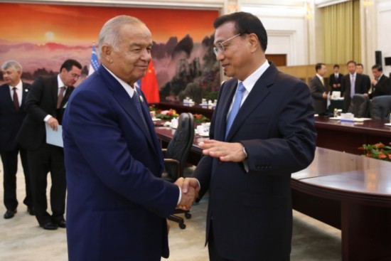 李克強(qiáng)總理會見烏茲別克斯坦總統(tǒng)卡里莫夫時說:"中烏可以在雙方感興趣的領(lǐng)域廣泛開展產(chǎn)能和裝備制造業(yè)合作。"