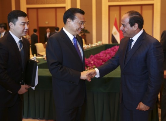李克強(qiáng)總理會見埃及總統(tǒng)塞西,就對方希望"加強(qiáng)反恐合作"提議表示:"我們既要加強(qiáng)反恐合作,也要妥善解決熱點問題,更要高度重視發(fā)展經(jīng)濟(jì),以鏟除恐怖主義傳播的土壤。"
