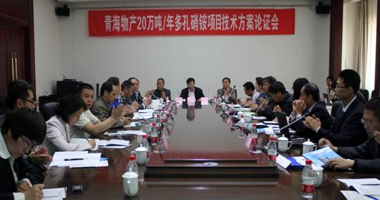 青海物產(chǎn)工業(yè)投資有限公司20萬噸/年多孔硝銨項目技術(shù)方案論證會于2013年5月17日-19日在青海西寧召開,省物產(chǎn)集團總公司總經(jīng)理王玉輝、副總經(jīng)理耿保平、北川工業(yè)園管委會副主任薛萬革、建行西寧支行副行長王硯宏蒞臨會議指導(dǎo),會議由物產(chǎn)工投常務(wù)副總經(jīng)理常海寧和專家委員會主任分別主持。煙臺萬華高級工程師王全文、山西天脊高級工程師劉金亮、湖北鐘祥凱龍高級工程師楊國富、華陸工程科技有限公司教授級高工劉艷軍、陜西興化工程師馮衛(wèi)、物產(chǎn)民爆總經(jīng)理袁海玲、物產(chǎn)工投高級工程師薛玉貴、華陸工程科技有限公司副總經(jīng)理齊吟、賽鼎工程有限公司商務(wù)部副主任劉軍彪及相關(guān)主設(shè)人員、項目建設(shè)單位代表等共36人參加了會議。專家委員會推選楊國富擔任主任委員、袁海玲擔任副主任委員。